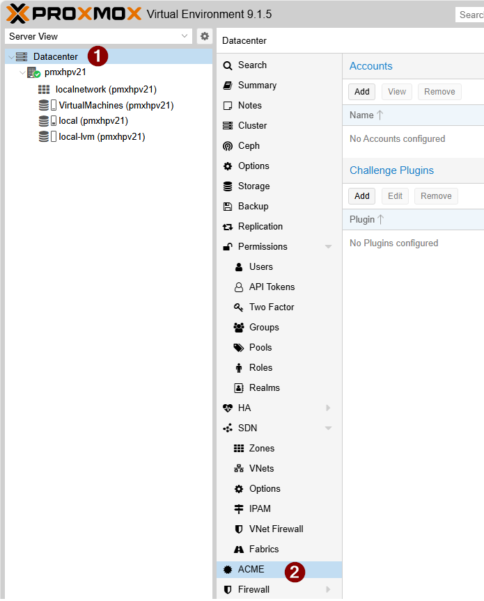 1. Create an ACME account in Proxmox and register it with Let’s Encrypt